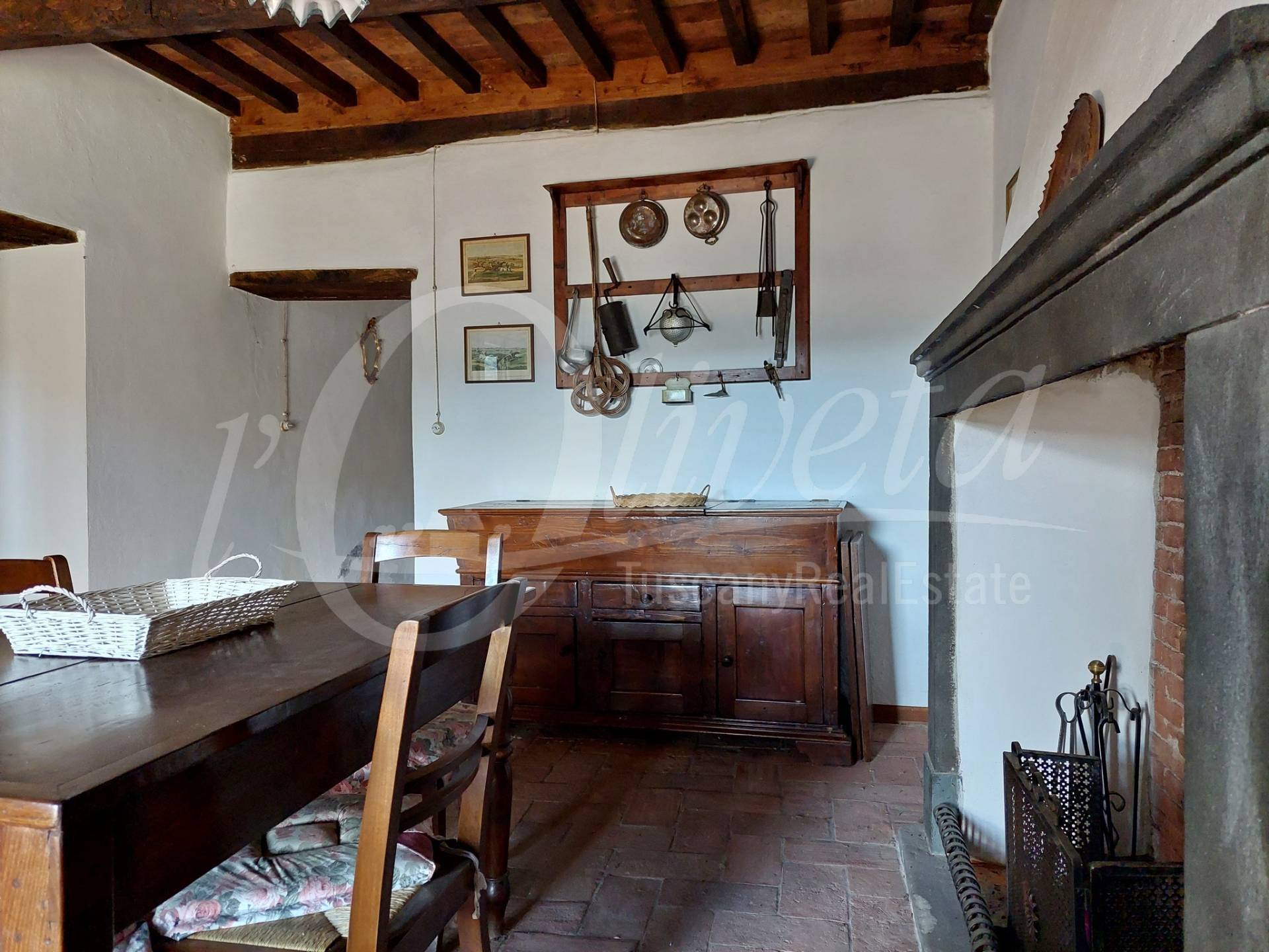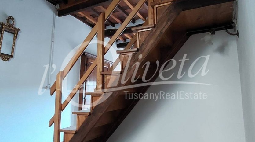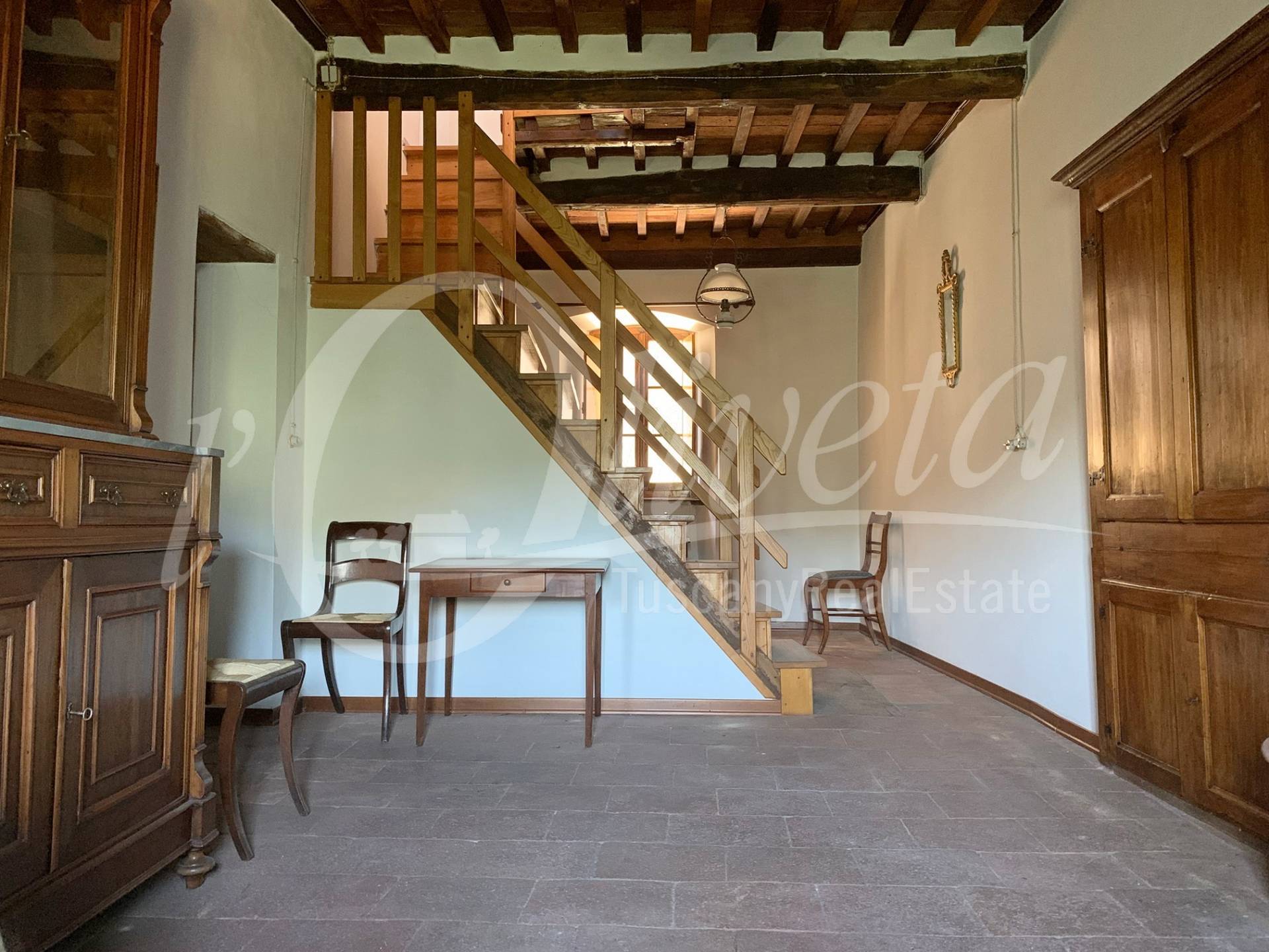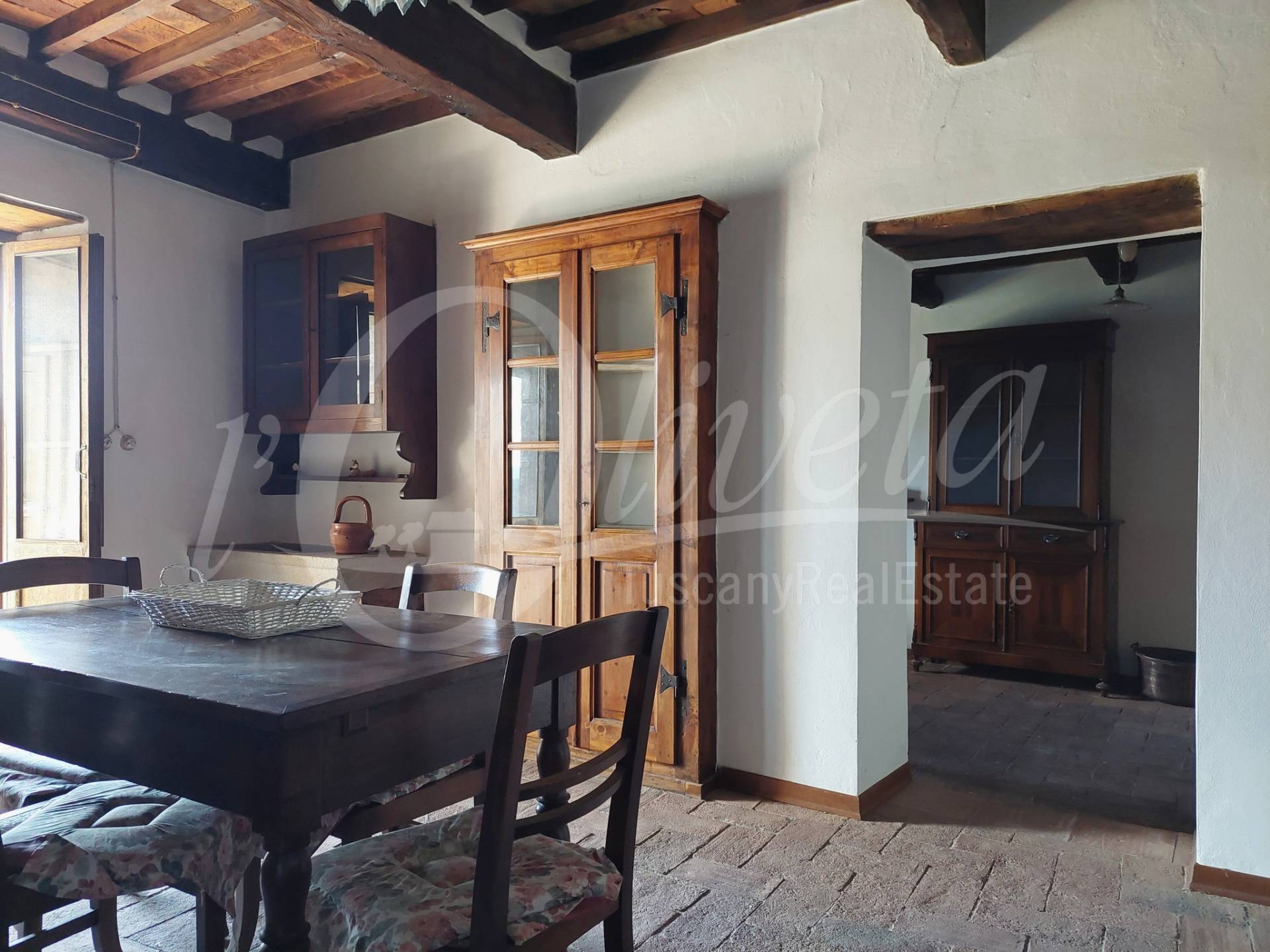 Questa affascinante abitazione, completamente ristrutturata negli anni ’90, è stata curata con profondo rispetto per lo stile tipico toscano. Entrando, si viene immediatamente avvolti dal calore dei materiali tradizionali: i pavimenti in cotto creano un’atmosfera rustica ed elegante, mentre i solai con travi in legno a vista, travicelli e mezzane conferiscono carattere e autenticità ad ogni ambiente. L’abitazione è sviluppata su tre piani compreso il sottotetto, oltre al piano seminterrato dove troviamo la cantina e il giardino. Al piano terra troviamo l’ingresso, il soggiorno, la cucina e il bagno. Dal soggiorno si accede al porticato e da qui si scende al piano sottostante, dove troviamo il locale cantina e il giardino. Al primo piano un grande soggiorno con camino e porticato e due camere. Al piano secondo sottotetto due grandi locali adibiti a soggiorno e camera.