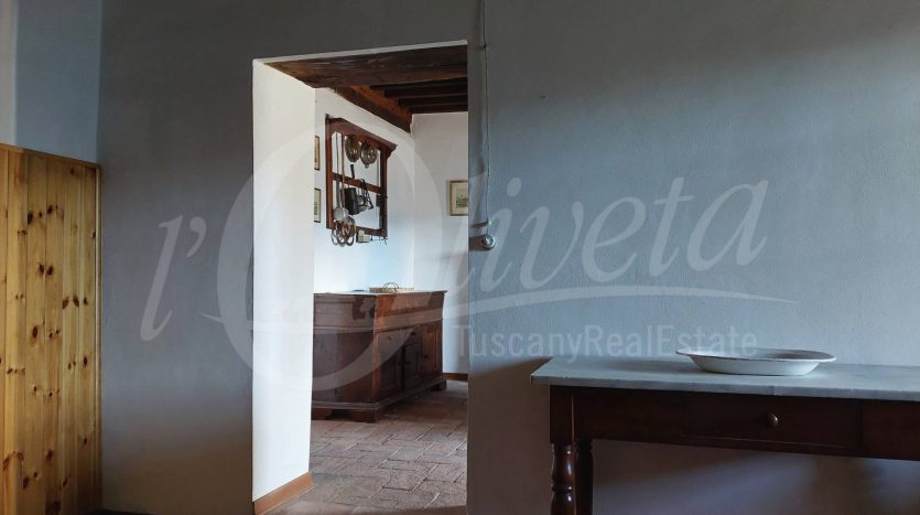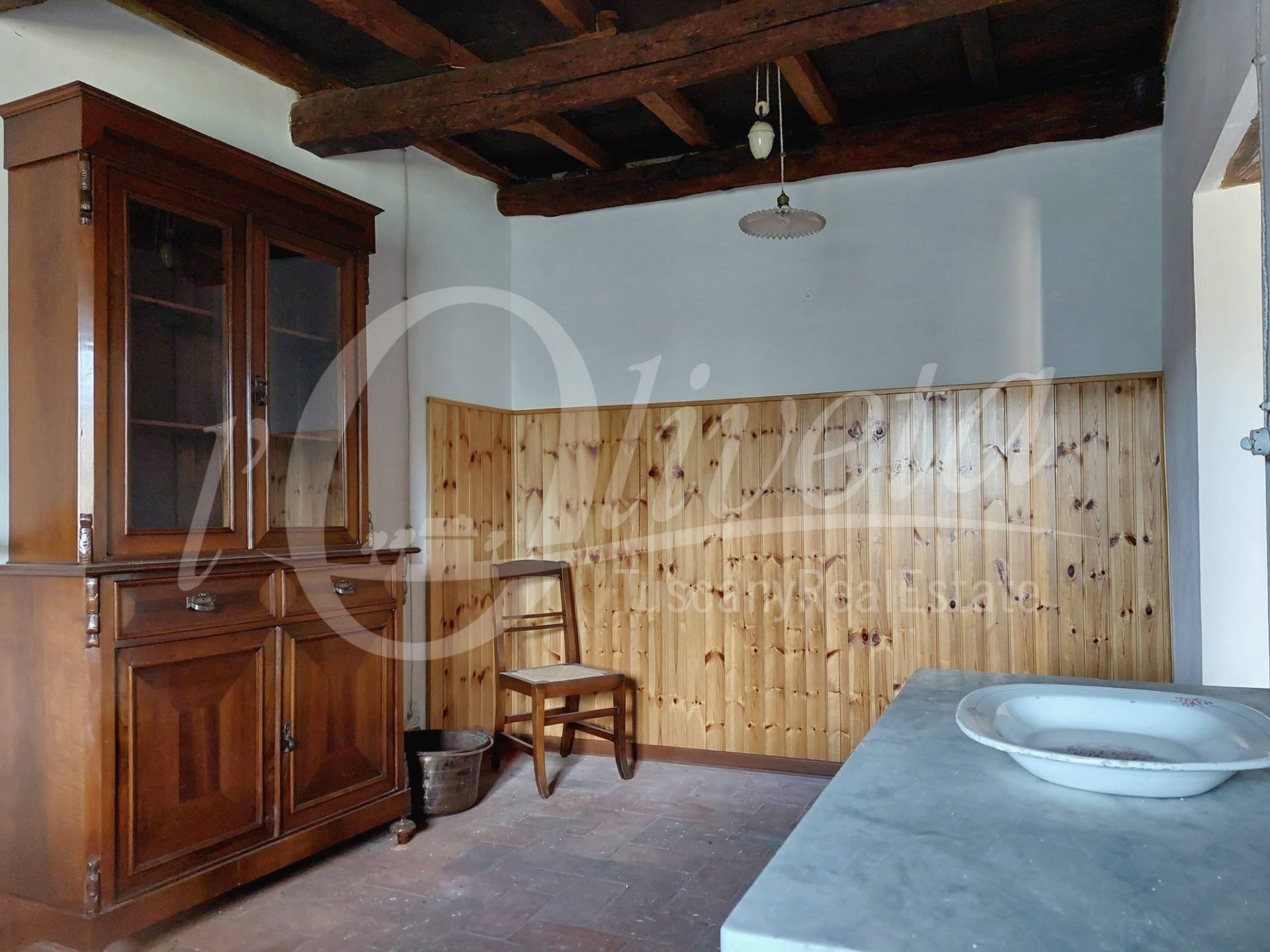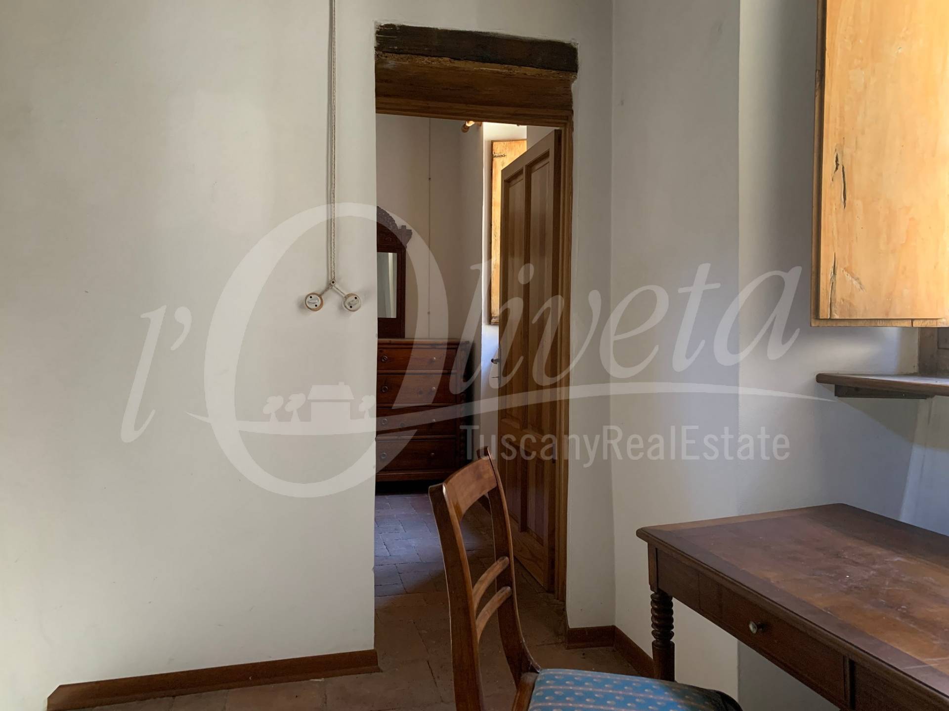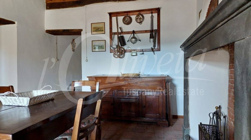 Questa affascinante abitazione, completamente ristrutturata negli anni ’90, è stata curata con profondo rispetto per lo stile tipico toscano. Entrando, si viene immediatamente avvolti dal calore dei materiali tradizionali: i pavimenti in cotto creano un’atmosfera rustica ed elegante, mentre i solai con travi in legno a vista, travicelli e mezzane conferiscono carattere e autenticità ad ogni ambiente. L’abitazione è sviluppata su tre piani compreso il sottotetto, oltre al piano seminterrato dove troviamo la cantina e il giardino. Al piano terra troviamo l’ingresso, il soggiorno, la cucina e il bagno. Dal soggiorno si accede al porticato e da qui si scende al piano sottostante, dove troviamo il locale cantina e il giardino. Al primo piano un grande soggiorno con camino e porticato e due camere. Al piano secondo sottotetto due grandi locali adibiti a soggiorno e camera.